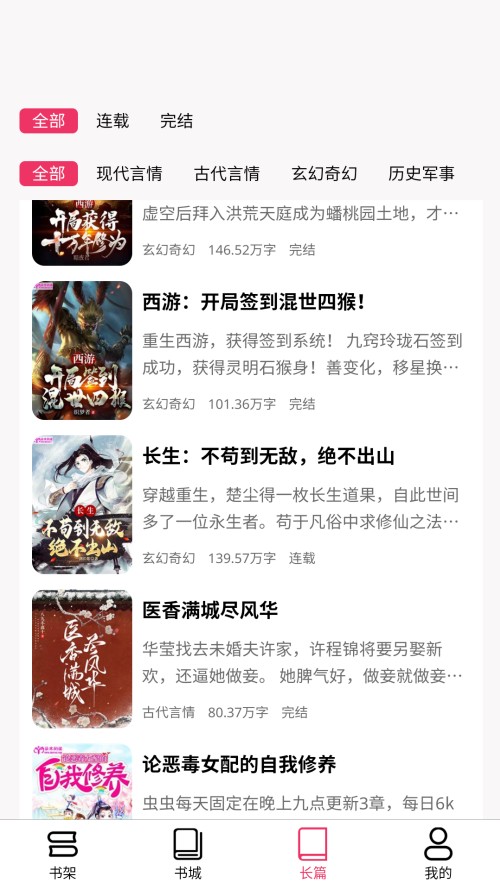 4、喜欢长篇类型小说可以在长篇类型里找。