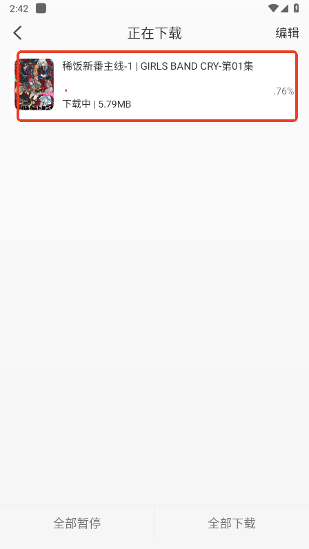 点击查看下载列表,可以对已下载或者正在下载的资源进行管理。