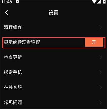 3.在设置界面找到显示继续观看弹幕,点击右侧的开关即可