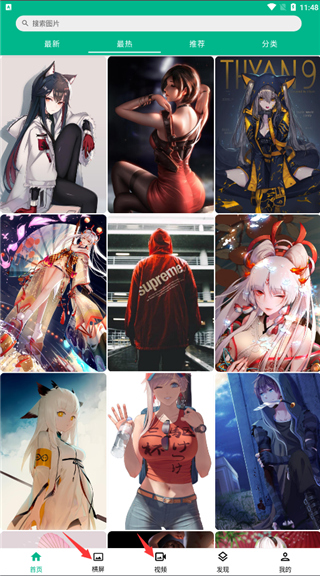 3、在下方还有可以你需要的壁纸需求,有视频的、横屏的;