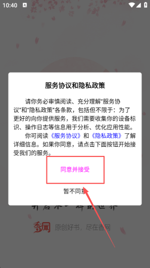 1、点击“同意”按钮,以顺利进入应用程序,开启您的阅读体验,享受丰富的内容选择。