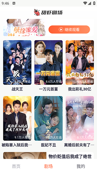 甜虾剧场app官方正版是一款专注于打造极致追剧体验的短剧视频平台,汇聚战神、甜宠、悬疑等多种热门题材。无论你钟情于热血沸腾的战争剧情、甜蜜心动的浪漫爱恋,还是紧张烧脑的悬疑故事,这里都能满足你的观剧偏好。