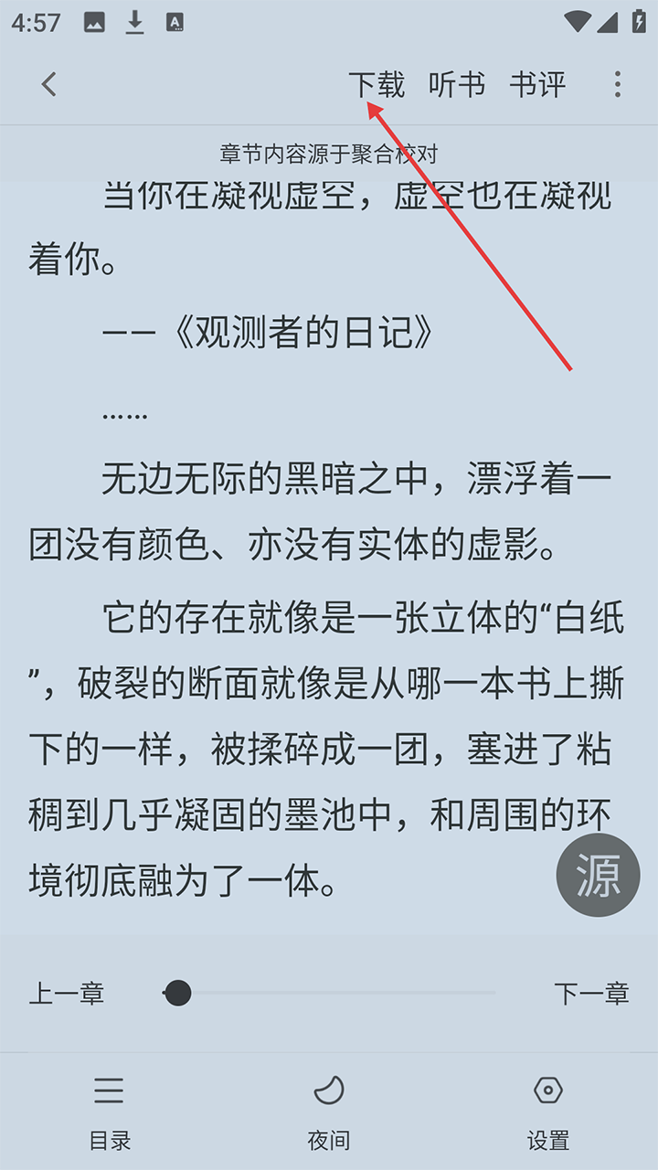 5、需要离线阅读时,进入章节页点击“下载”进行缓存。