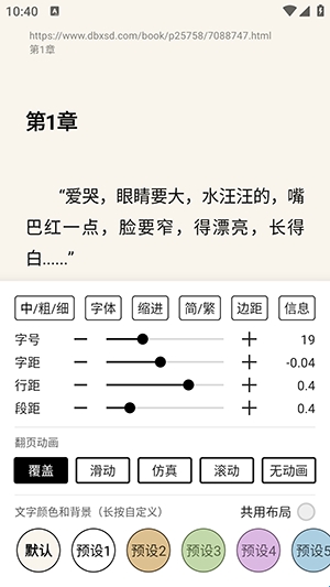 3.个性定制:允许用户根据自身的习惯与偏好,调整字体大小、背景颜色以及翻页方式等参数,从而打造专属的舒适阅读空间。