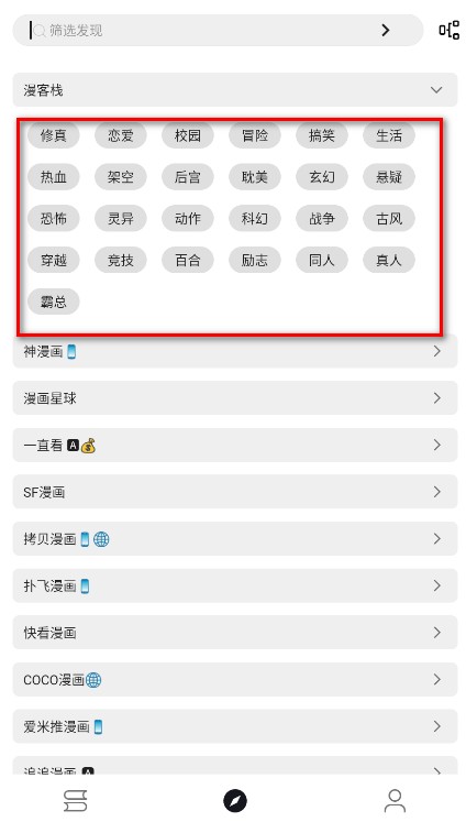p>1、下载安装并打开最新版的泼辣漫画,点击下方中间的板块。