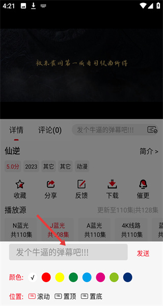 4、完成弹幕内容输入和设置后,点击发送按钮,即可将弹幕发送到播放画面中。