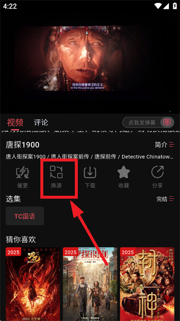 1、下载安装并打开灵虎影视app,进入到自己想看的影视界面,点击换源