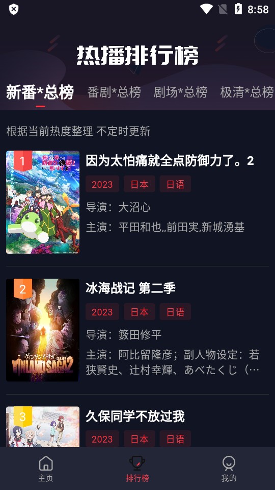 5、热播排行榜:实时推荐新番、热门动漫,让你追番不掉队。