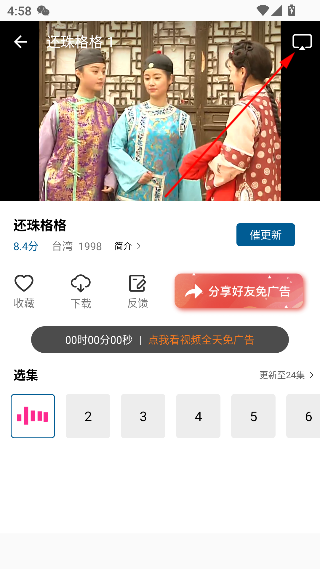 2、然后点击右上角的投屏按键。