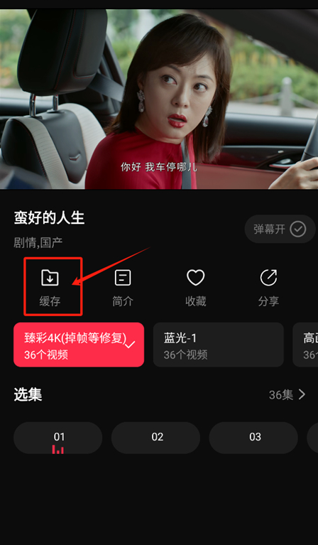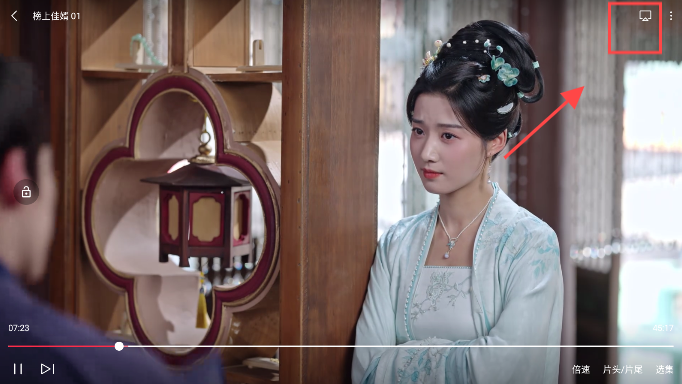 2、再搜索查找想看的影片,找到后在影片播放界面中点击投屏标志