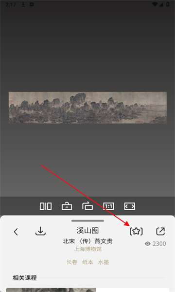 1、在首页搜索框输入喜欢的画作名称,找到对应画作并点击指定位置,即可完成收藏。