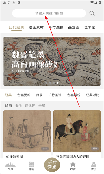 千竹书院官网是一个专注于中国传统绘画文化学习与交流的平台,致力于传承和弘扬中国传统艺术。软件汇集了历代名家的经典画作,供用户学习和借鉴,从而掌握传统绘画的技巧与精髓。平台还邀请了众多名师入驻,为用户提供专业的教学与指导,帮助提升绘画技能,快速进步。