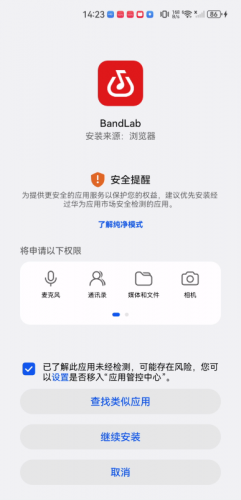 3、点击勾选“已了解此应用未经检测……”,点击“继续安装”。