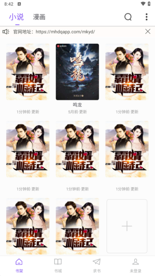 2、进入软件首页,即是软件的书架板块,用户可以点击“+”添加书籍。