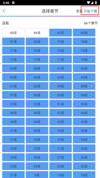 4、最后选择需要下载的章节之后点击【开始下载】即可;