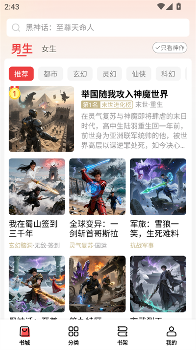 1、首页展示的热门推荐,让你在选择小说时可以轻松找到当下最受欢迎的作品