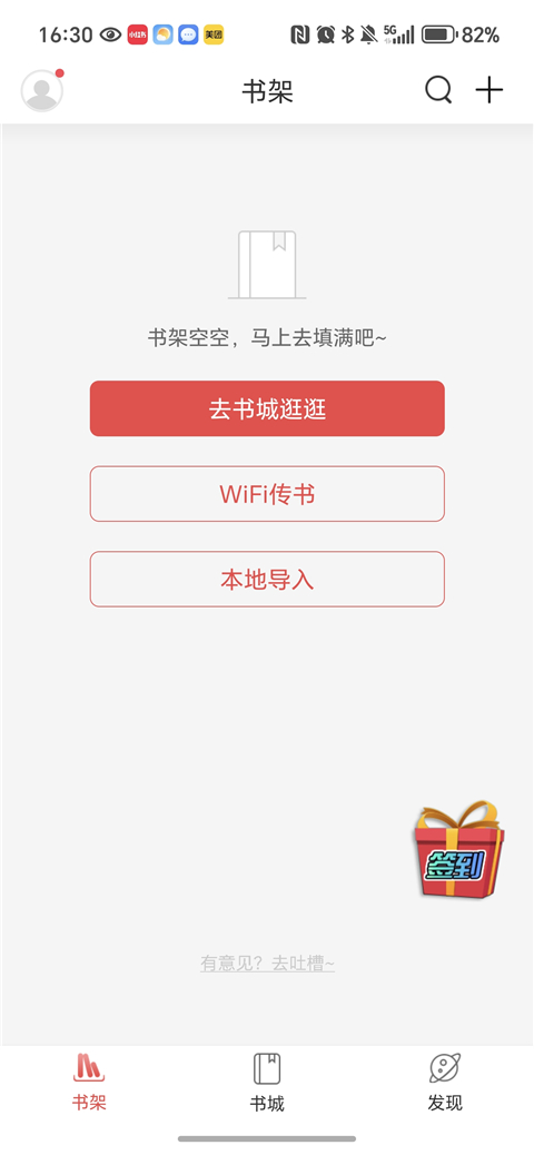 1、打开蜜桃小说,进入 “书架” 页面找到 “本地导入” 选项。
