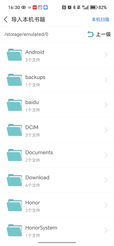 2、选择手机中存储的小说文件(如 TXT 格式),确认导入路径。