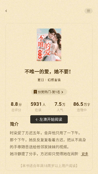 1、专享你的个性化小说秘境,浩瀚书海任你遨游,随心所选,类型多样契合你的心情节拍。