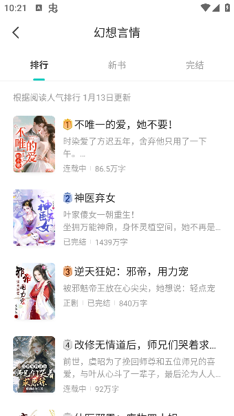 6、提供了排行榜帮助用户了解受欢迎的小说哦