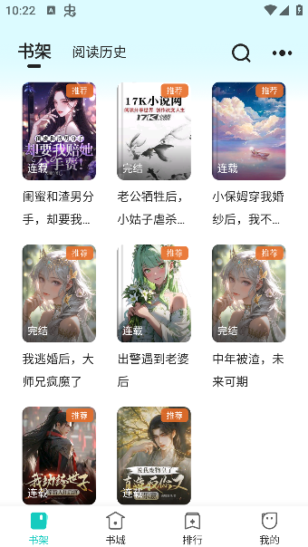 3、书架管理使用方式流程:将喜欢的小说加入书架收藏,方便下次快速找到并继续阅读进度记录。