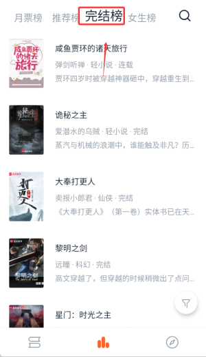 3、进入分类榜单区,定位至已完结作品专区。此处汇集全部完结佳作,方便依据热度与评分筛选心仪读本。
