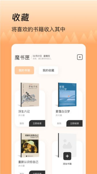 支持收藏书籍,用户可以将读到的各样好书添加至我的收藏,方便日后查看。