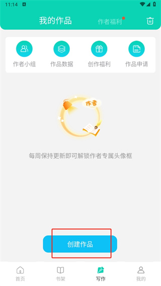 2、然后在写作的页面中点击【创建作品】;