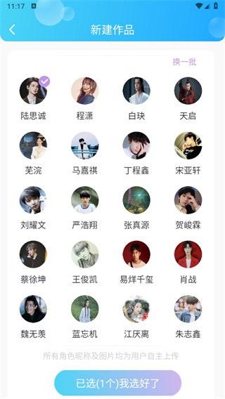 4、之后我们选择角色导入作品,选择好后点击【我选好了】;