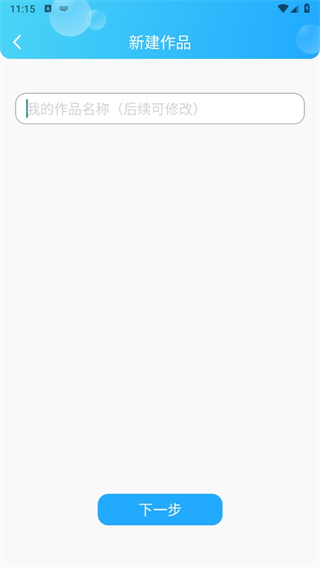 3、接着来到新建作品的页面中输入上作品名称后点击【下一步】;
