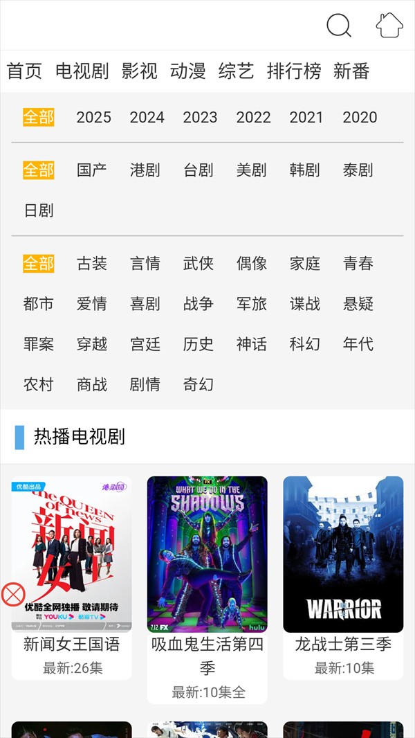 2、可以通过电视剧功能来获取到古装、言情、武侠、偶像、家庭、青春等多种类型的影视剧。