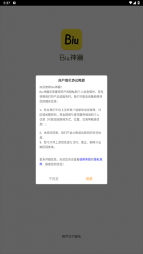 2、阅读用户协议和隐私政策后,点击同意进入软件。
