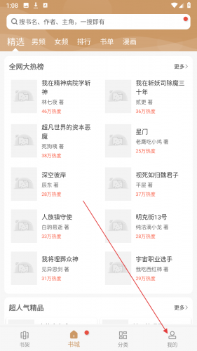 1、在书城页,点击底部【我的】进入个人中心界面。