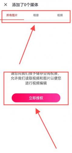 2、点击右下角进去后,点击立即授权,可以选择想做的图片或者视频。