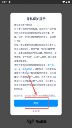 1、点击“同意”按钮以接受相关条款,成功进入应用的主界面,为后续操作做好准备。