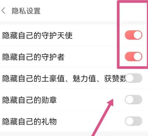 第四步:点击【隐藏自己的守护天使】后的圆形按钮,待显示红色即可,详见下图所示。