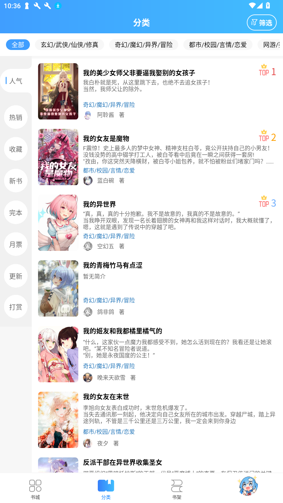 各种分类排行榜功能:热门小说一网打尽,从现在开始拒绝书荒!