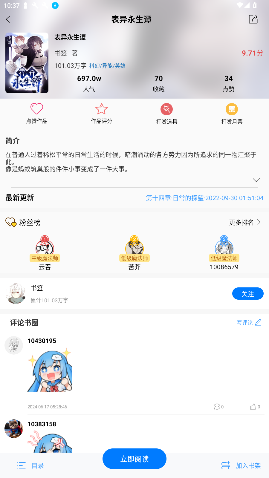社区互动性强:应用内设有评论和讨论区,鼓励读者分享看法,互相交流阅读体验。阅读器每行都有吐槽和表情包,增添了阅读乐趣。此外,每部作品下方都可以收藏点赞和评论,还能给喜欢的作者送去丰富的礼物。