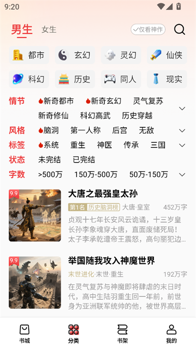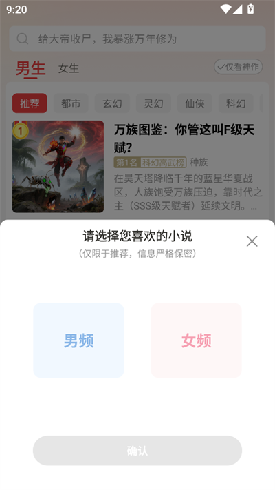 进入之后选择男频或者女频