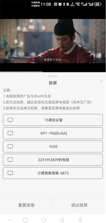 3.将我们的手机和电视处于同一个WiFi下,点击手机上搜索到的正确的设备名称,开始投屏就好啦。
