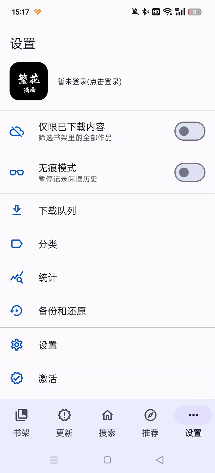3、我们只需要找到底部的【推荐】功能栏就行,这里内置了超多其他漫画的阅读源,无需导入,自由使用。