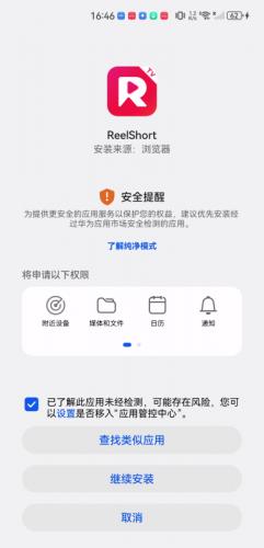 3、第三步,点击勾选“已了解此应用未经检测……”,然后再点击“继续安装”。(出现安全提醒,不用惊慌)