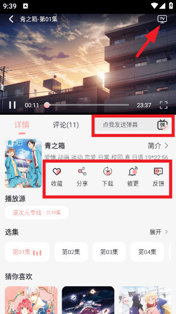 点击播放之后如下图所示,有很多实用功能,如投屏、下载、弹幕等,满足你的各种需要。