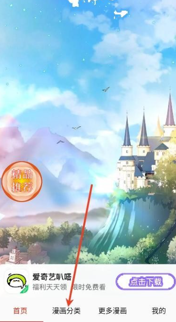 1、点击首页下方的漫画分类按钮
