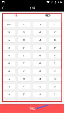 4、在章节下载选择页面,选定目标章节后,点击底部的【下载】按钮,即可完成对应漫画章节的下载操作。