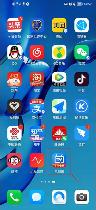 2、之后按动遥控器上的菜单按钮,调出电视家的节目菜单。