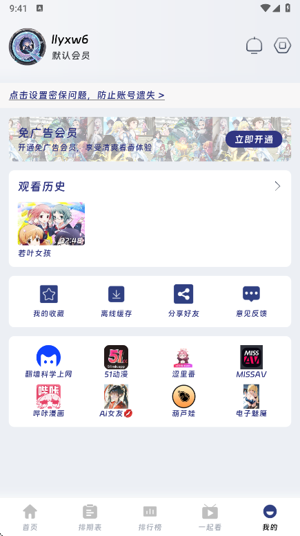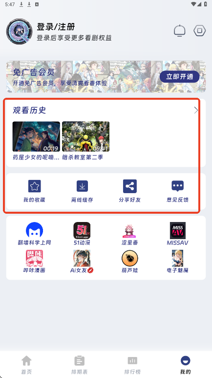5.在个人中心,你可以查看观看历史、收藏的动漫、下载的资源等。