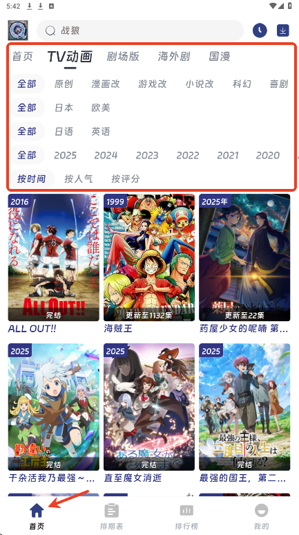 2.也可以通过搜索框输入关键词来查找自己喜欢的动漫。