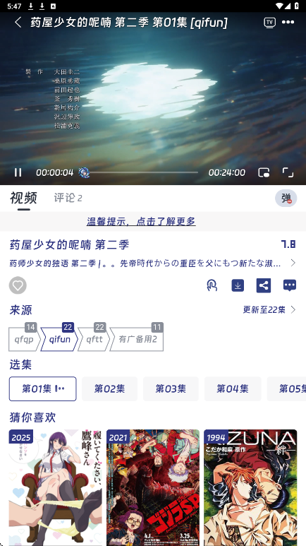 QiFun动漫官方app最新版是一款便捷的动漫观看平台。有了这款软件之后,用户不仅可以欣赏到精彩的动漫作品,还能与其他爱好者互动交流,分享你的观后感受。平台资源更新速度非常快,确保你总能第一时间看到最新的动漫作品。