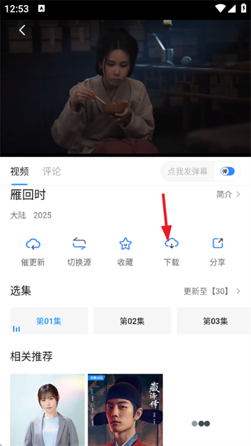 2、点击视频下方的下载按钮;